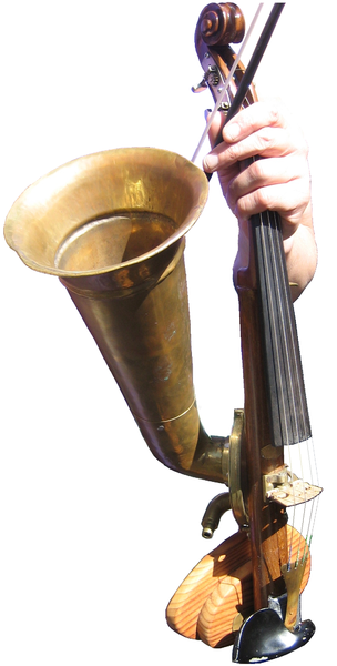 指1901年左右,倫敦的奧古斯特‧斯特羅(Augustus Stroh)為了錄音而發明的樂器。琴身包括狹長的木板或鋁板,板子頂部作為琴弦的指板,管樂器的金屬號口銜接彈性獸皮,並且固定於琴橋的一端。有些用於音樂會的斯特羅小提琴會有兩個金屬號口。